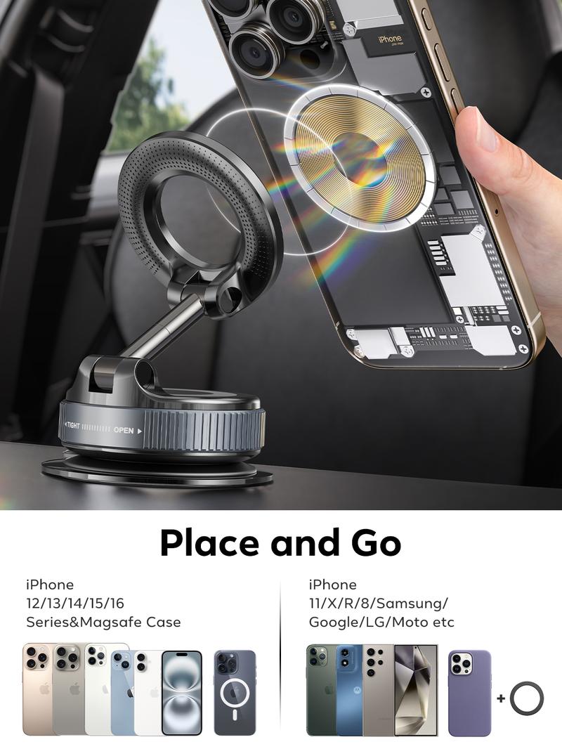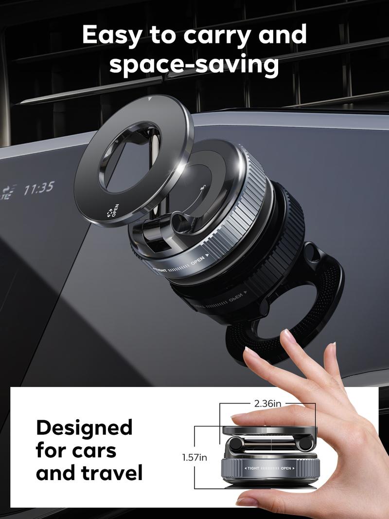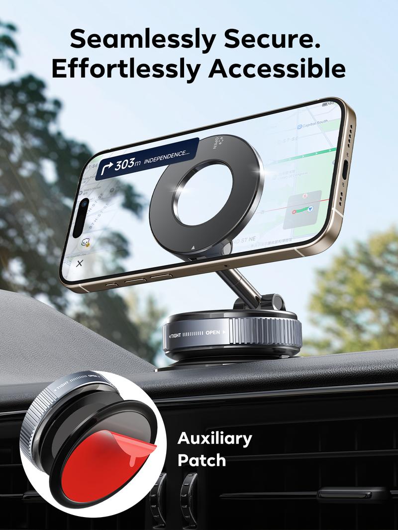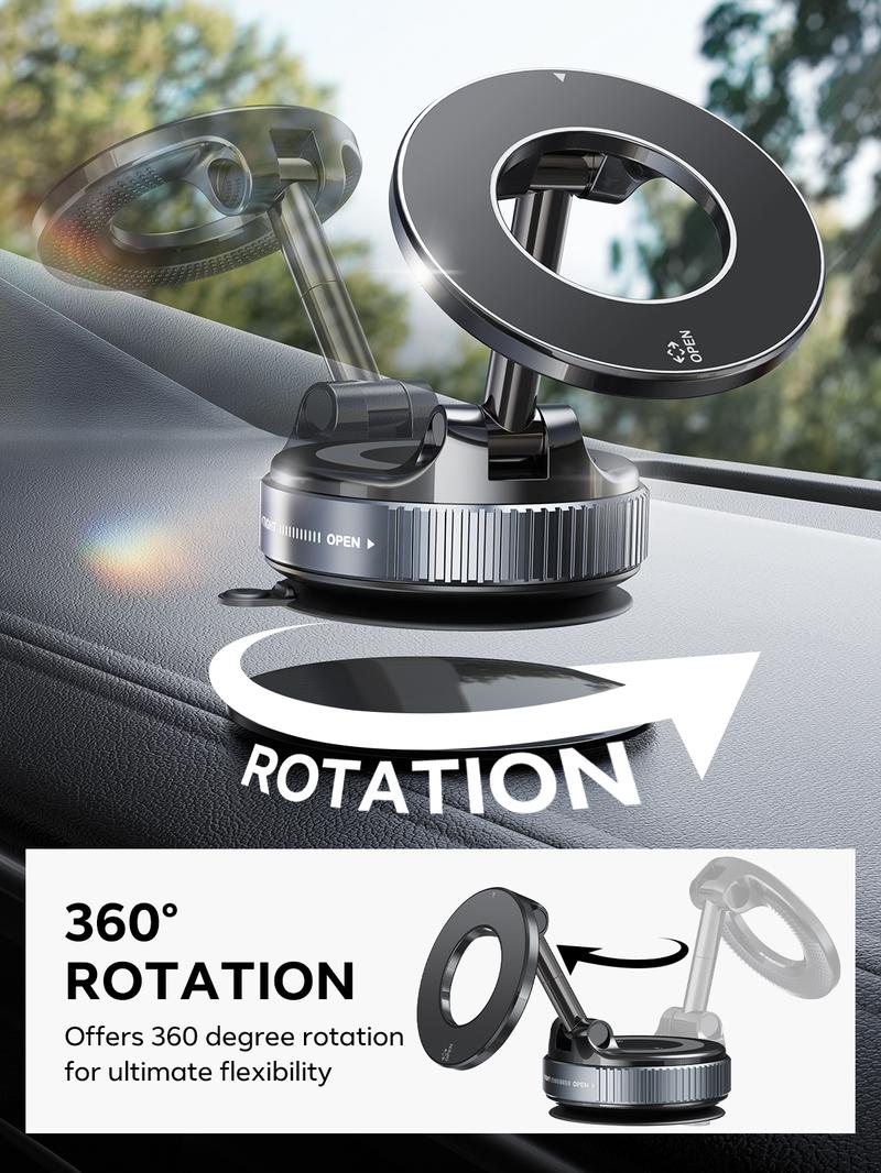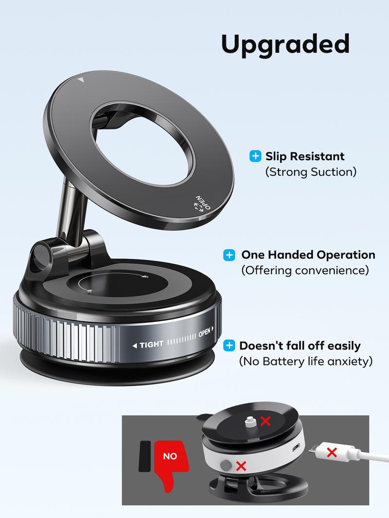 Magnetic Phone Mount, Suction Car Phone Holder, Vacuum Phone Mount with One-Step Lock, Compact & Stable Design for Car Accessories
